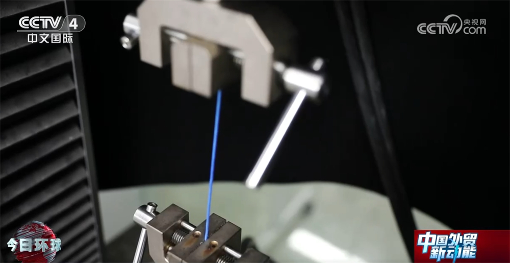 浙江省现代纺织手艺立异核心研究人员胡能引见称:“别看这根纤维很细,但它其实包含了1万根超高量聚乙烯原丝,它通过包芯编织而成,正在这台高强度的拉伸仪器下,它仍连结纹丝不动。”!