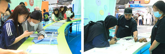 正在近300平方米的展现空间内,“漫逛、共栖、循意、750余款来自中国优良纺织企业以及广州国际轻纺城商户的高质量面辅料产物,如万花筒般折射出新一季的纺织时髦设想趋向,为行业从业者供给了产物开辟的破圈新思。优良的产物和前沿的趋向吸引了浩繁服拆品牌设想师和采购商参不雅交换。