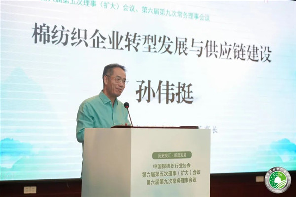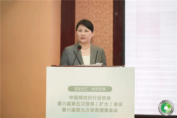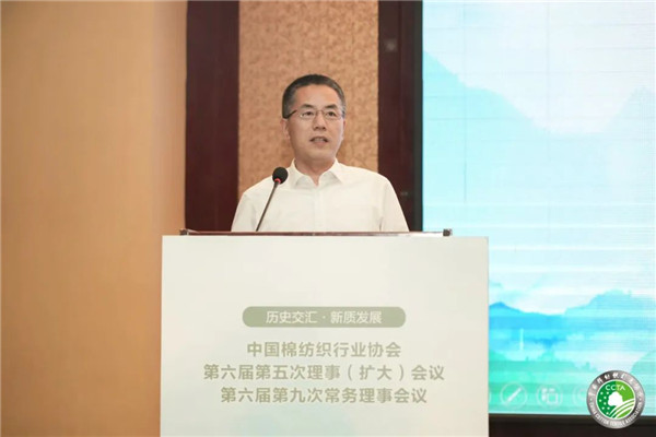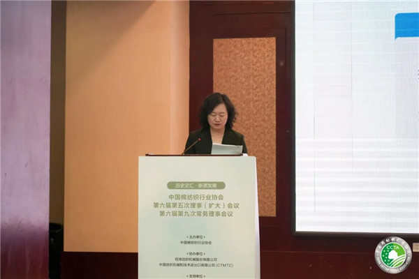 中国棉纺织行业协会副会长兼秘书长李杰做《中国棉纺织行业协会第六届第五次理事(扩大)会议财政演讲及任职变动环境申明》。