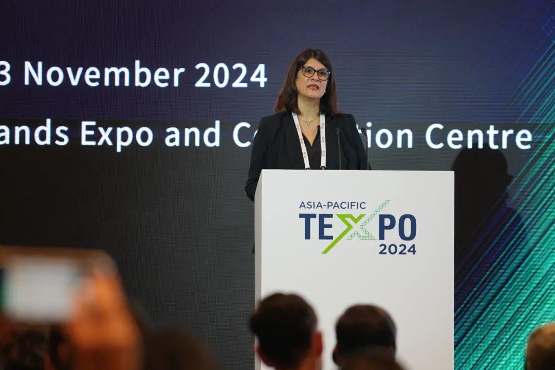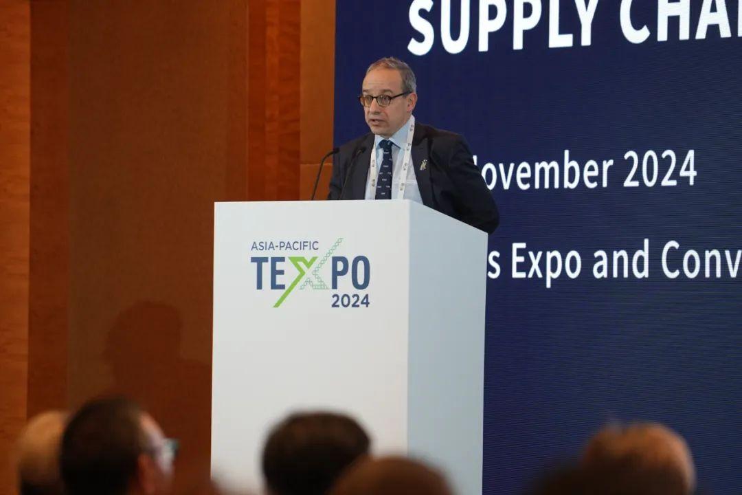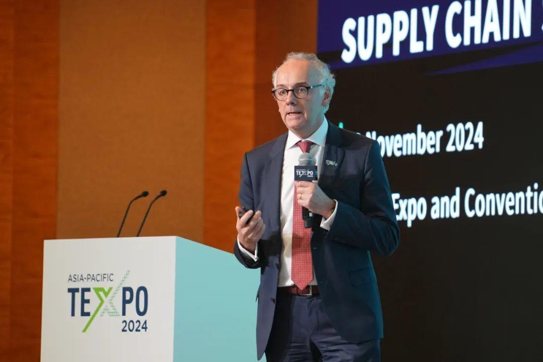 11月13日,2024亚太纺织服拆供应链博览会暨高峰论坛的博览会取高峰论坛正在新加坡金沙会议展览核心同期隆沉举办。