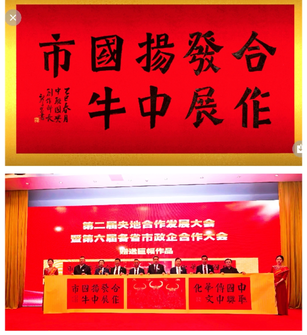 据相关分析报道:出名爱国人士,国际计谋和研究专家,中联国兴书画院华国中院长,施行院长徐磊,出名画家、中联国兴书画院创做部长龙子慧配合应邀出席了由各省市驻京机构商务结合会从办的“第二届央地合做成长大会暨第六届各省市政企合做大会”。并向嘉会赠送了出名画家龙子慧巨幅画做《犇牛图》,盛世中华中国牛市之赞歌,“中联国兴传中汉文化,合做成长扬中国牛市”。配合帮力中国经济大成长,中华平易近族伟大回复。