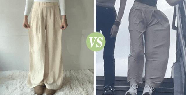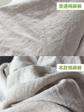 选品组同事还特意拿它跟网上那些价钱纷歧样,但看着差不多的棉麻裤回来对比,发觉面料质量实的差很多多少: