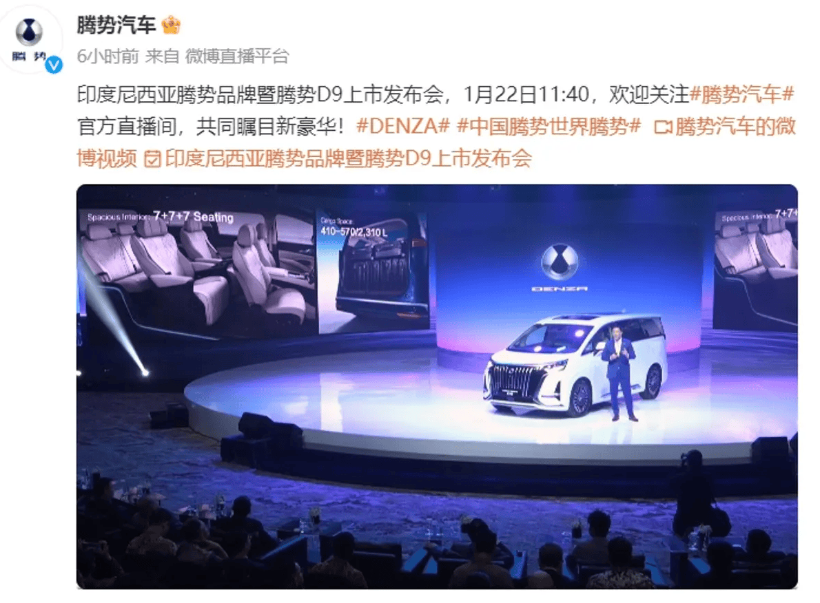 腾势D9正在印尼市场上市 售价约合人平易近币4